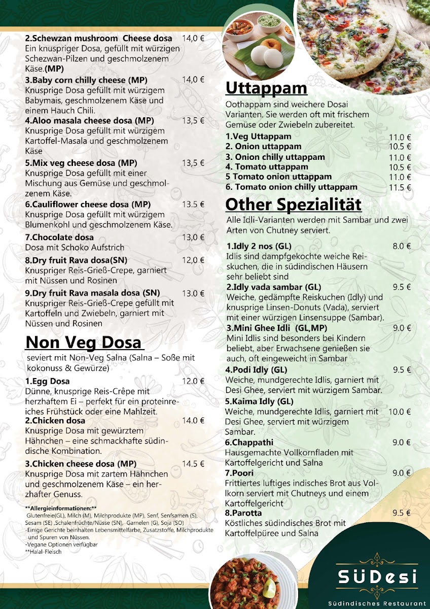 Nestled in the heart of Luneburg at Bardowicker Str. 17, SuDesi Restaurant invites diners on an authentic South Indian culinary journey. A true gem, SuDesi offers an array of regional dishes that stand out from typical Indian fare in Germany. Start your meal with their aromatic rasam, a spiced soup that refreshes the palate. The restaurant's signature dosa, a crispy pancake, captivates with its subtly sweet taste and delightful fillings like the potato masala.